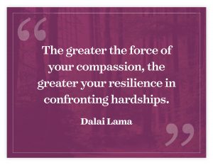 - One of the best predictors of resiliency is the quality of our relationships. While writing this post, I reflected on difficult times in my own life from the death of my first love at age 23, to managing through difficult health issues and pushing myself out of my comfort zone. In each of these instances, the common themes present were gratitude in the midst of pain, heightened fear to the point of crying but still moving forward, all while relying on trusted relationships to persevere through every single day. And in my reflection, I realized that it was compassion that led to resiliency – getting my life back on track and being better for having lived through it.